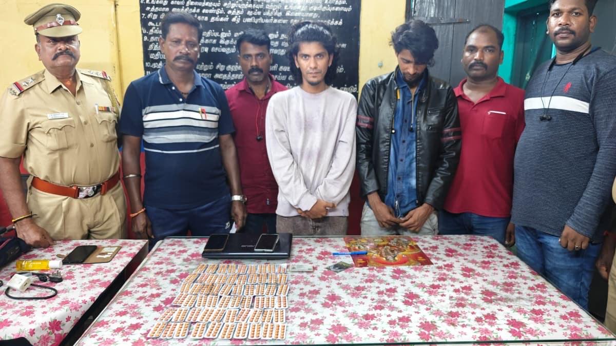 Police said the arrested persons, K. Mastan Kurshid Ahmad, 31, A. Abdul Rasheed, 33, S. Murthash, 37, V. Sageeth, 40, and Umaiyar, 22, are residents of Mumbai. Based on a tip-off to Ranipet SP Ayman Jamal, special teams were formed to conduct surprise checks in railway stations in the district. Accordingly, a special police team checked the Mumbai-Chennai superfast express at Arakkonam railway station and seized the tablets from the duo, Mastan Kurshid Ahmad and Abdul Rasheed.