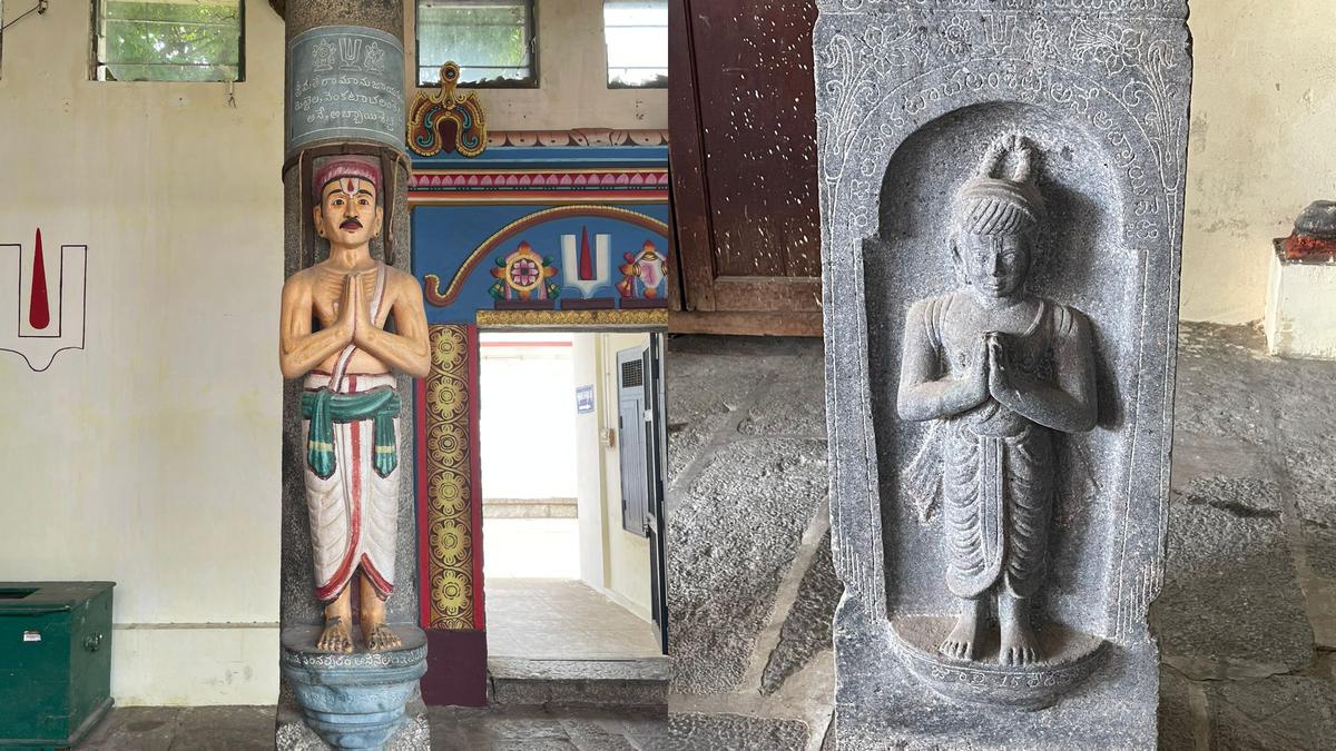 Two depictions of Rettala Venkatachalam aka Abboyi Chetty, a Dubash, at the Chenna Kesava Perumal Temple. Photo: Sruti Magazine