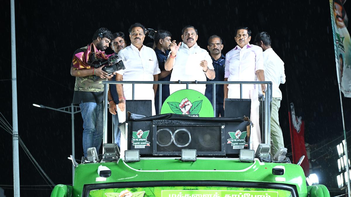 According to him, several lakhs of tonnes of m-sand, p-sand, and blue metal were mined in different parts of the State every month. “It was a big scandal. Fake cases were being registered against the transporters, who failed to heed to the threat,” Mr. Palaniswami said. He alleged that the DMK had planned to use the ill-gotten wealth to buy voters in the 2026 Assembly elections.